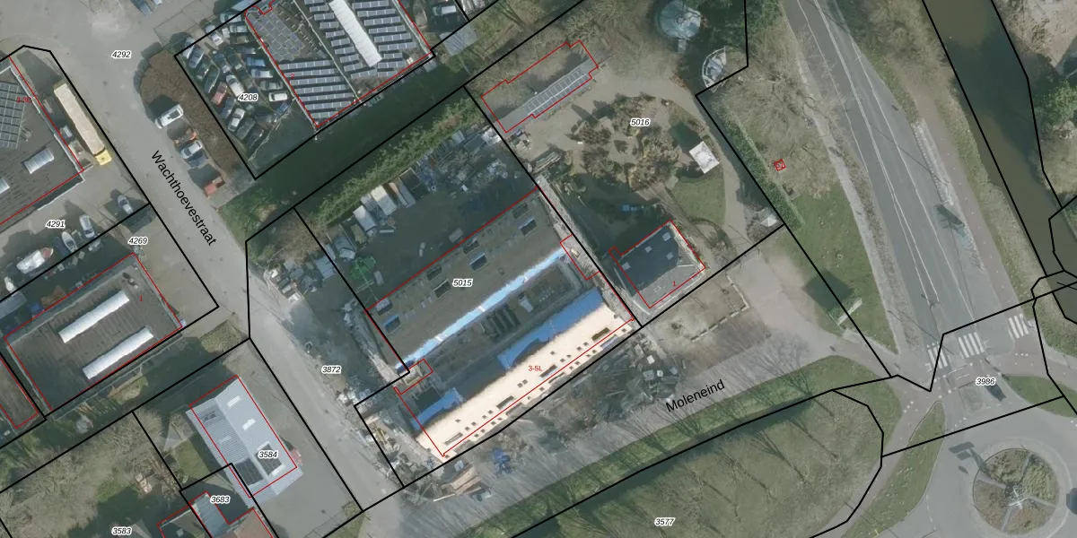 Moleneind 5-B is gelegen op kadastraal perceel SKN00N5015. Deze kadastrale aanduiding is uniek en wordt gebruikt door het Kadaster om eigendomsrechten en andere zakelijke rechten vast te leggen. Het perceel maakt onderdeel uit van de kadastrale gemeente Spijkenisse.