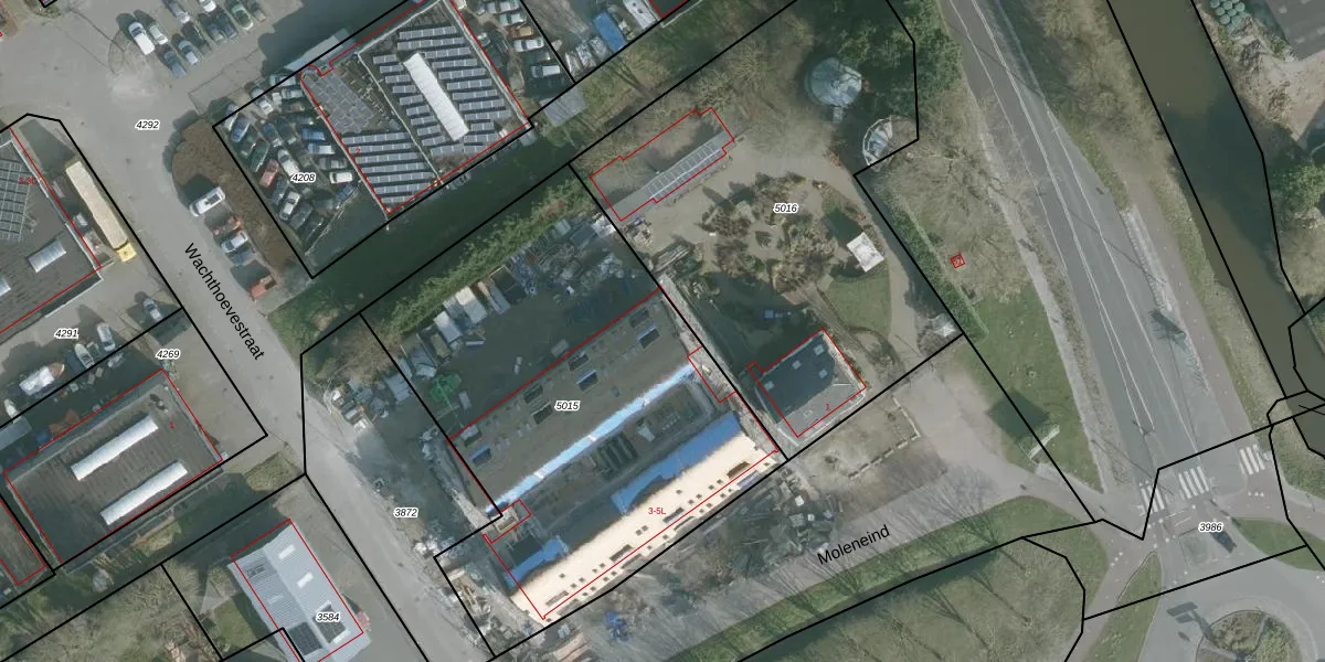 Moleneind 5-L is gelegen op kadastraal perceel SKN00N5015. Deze kadastrale aanduiding is uniek en wordt gebruikt door het Kadaster om eigendomsrechten en andere zakelijke rechten vast te leggen. Het perceel maakt onderdeel uit van de kadastrale gemeente Spijkenisse.