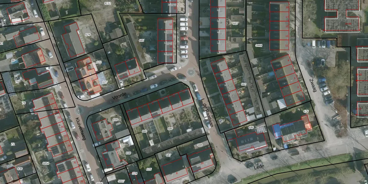 Het perceel waarop Voorde 12 staat heeft een oppervlakte van 1166 m². Dit is een zeer groot perceel. De perceeloppervlakte wordt geregistreerd door het Kadaster. Gedetailleerde informatie over de maten van dit perceel kunt u vinden in het rapport Kadastrale kaart met maatvoering van Voorde 12.
