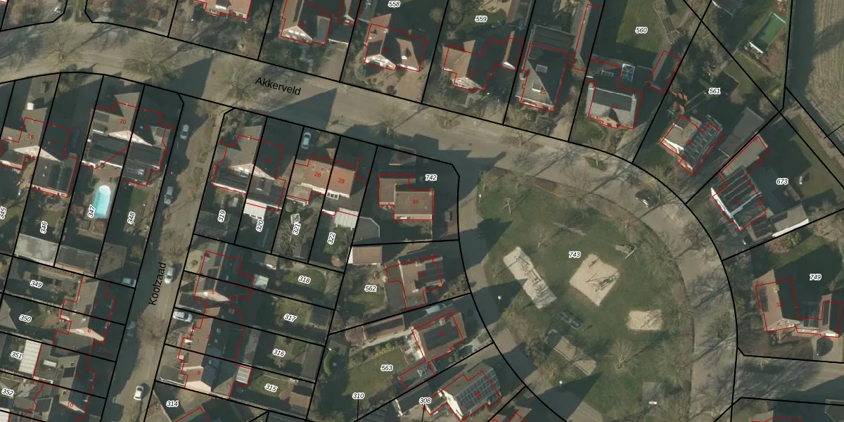 Akkerveld 30 is gelegen op kadastraal perceel HDN01W742. Deze kadastrale aanduiding is uniek en wordt gebruikt door het Kadaster om eigendomsrechten en andere zakelijke rechten vast te leggen. Het perceel maakt onderdeel uit van de kadastrale gemeente Helden.