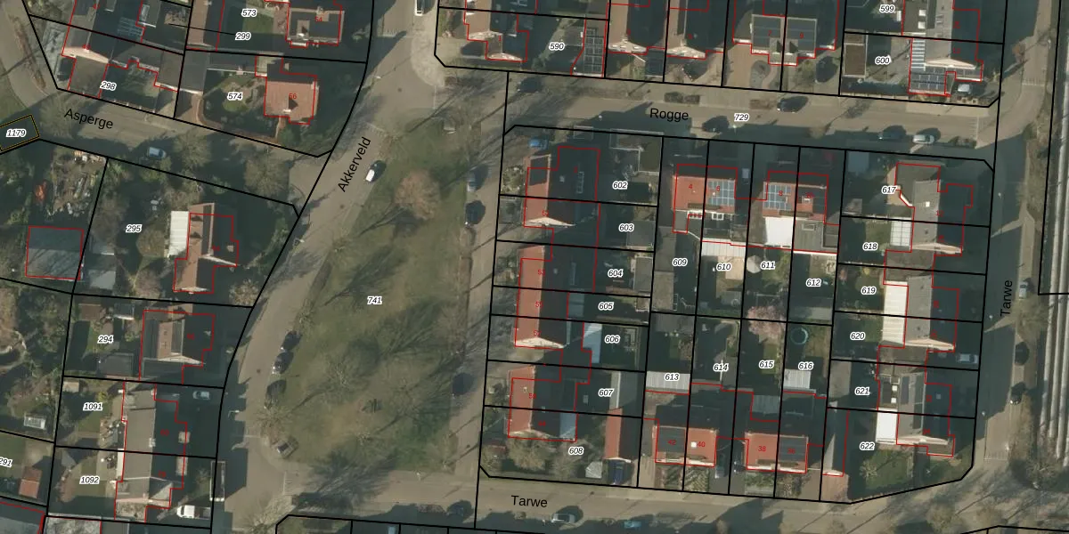 Akkerveld 53 is gelegen op kadastraal perceel HDN01W604. Deze kadastrale aanduiding is uniek en wordt gebruikt door het Kadaster om eigendomsrechten en andere zakelijke rechten vast te leggen. Het perceel maakt onderdeel uit van de kadastrale gemeente Helden.