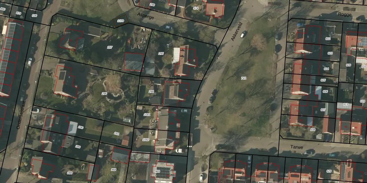 Gebruik de zoekbalk of klik op een perceel voor informatie over de adressen binnen dit perceel.