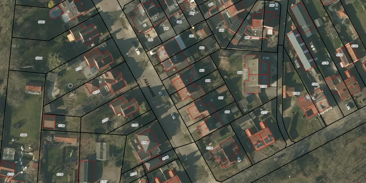 Akkerveld 75 is gelegen op kadastraal perceel HDN01W654. Deze kadastrale aanduiding is uniek en wordt gebruikt door het Kadaster om eigendomsrechten en andere zakelijke rechten vast te leggen. Het perceel maakt onderdeel uit van de kadastrale gemeente Helden.