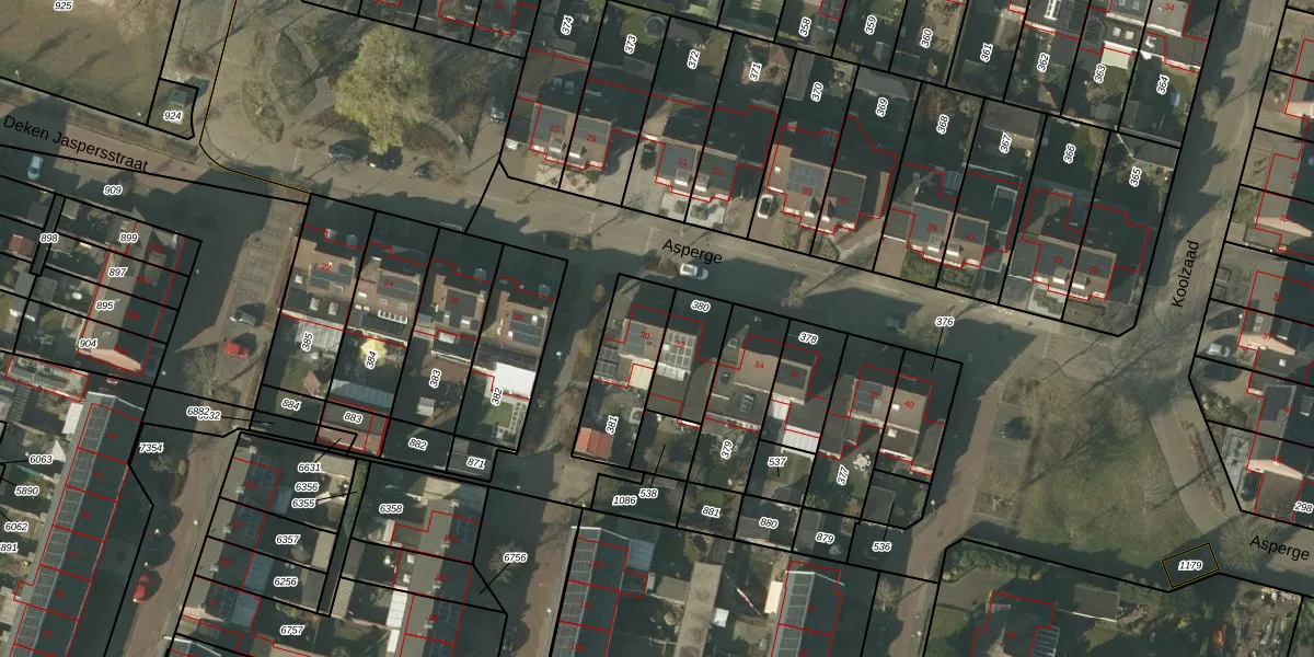 Het perceel waarop Asperge 30 staat heeft een oppervlakte van 257 m². Dit is een middelgroot perceel. De perceeloppervlakte wordt geregistreerd door het Kadaster. Gedetailleerde informatie over de maten van dit perceel kunt u vinden in het rapport Kadastrale kaart met maatvoering van Asperge 30.