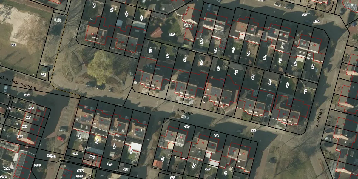 Het perceel waarop Asperge 31 staat heeft een oppervlakte van 297 m². Dit is een middelgroot perceel. De perceeloppervlakte wordt geregistreerd door het Kadaster. Gedetailleerde informatie over de maten van dit perceel kunt u vinden in het rapport Kadastrale kaart met maatvoering van Asperge 31.