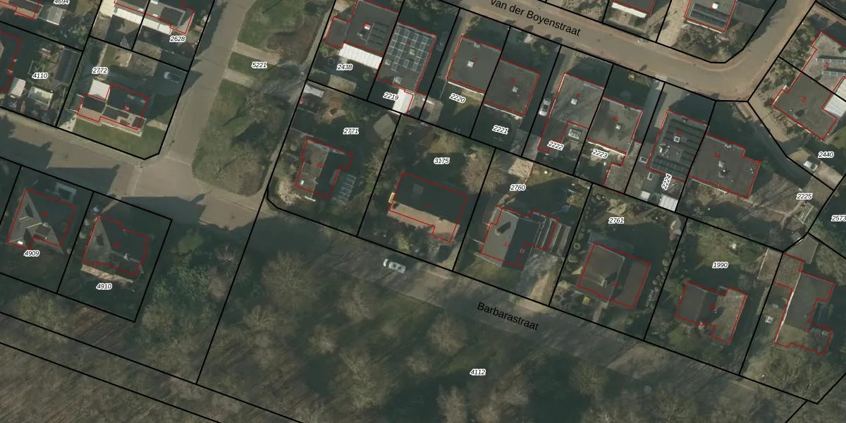 Gebruik de zoekbalk of klik op een perceel voor informatie over de adressen binnen dit perceel.