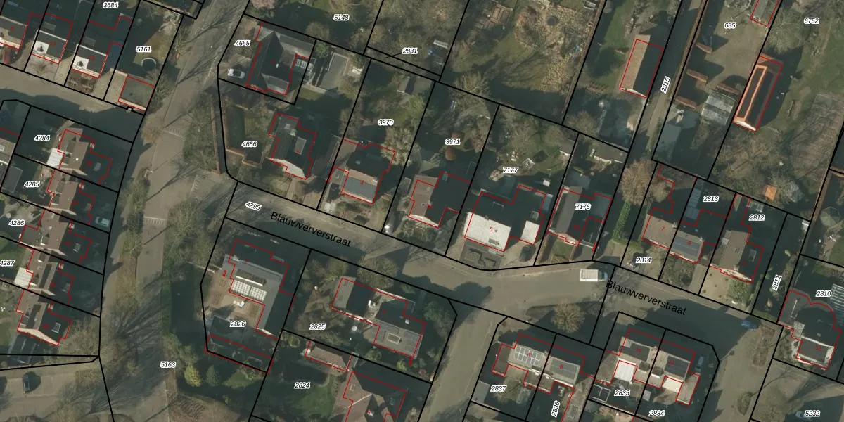 Het perceel waarop Blauwververstraat 3-A staat heeft een oppervlakte van 616 m². Dit is een groot perceel. De perceeloppervlakte wordt geregistreerd door het Kadaster. Gedetailleerde informatie over de maten van dit perceel kunt u vinden in het rapport Kadastrale kaart met maatvoering van Blauwververstraat 3-A.