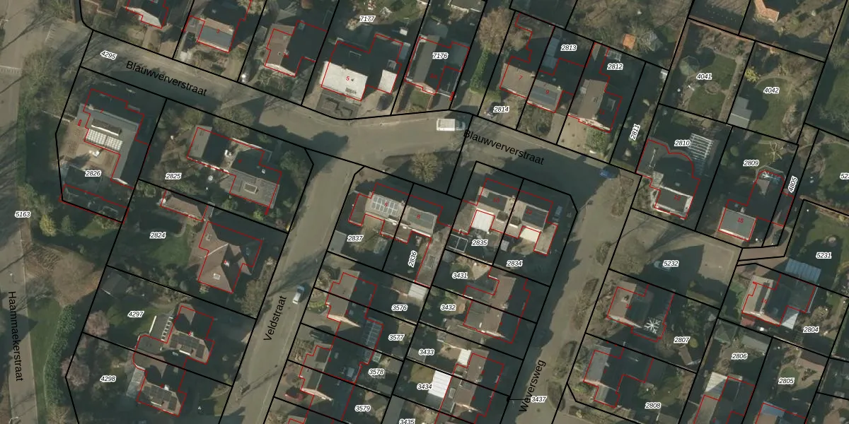 Blauwververstraat 8 is gelegen op kadastraal perceel HDN01G2836. Deze kadastrale aanduiding is uniek en wordt gebruikt door het Kadaster om eigendomsrechten en andere zakelijke rechten vast te leggen. Het perceel maakt onderdeel uit van de kadastrale gemeente Helden.