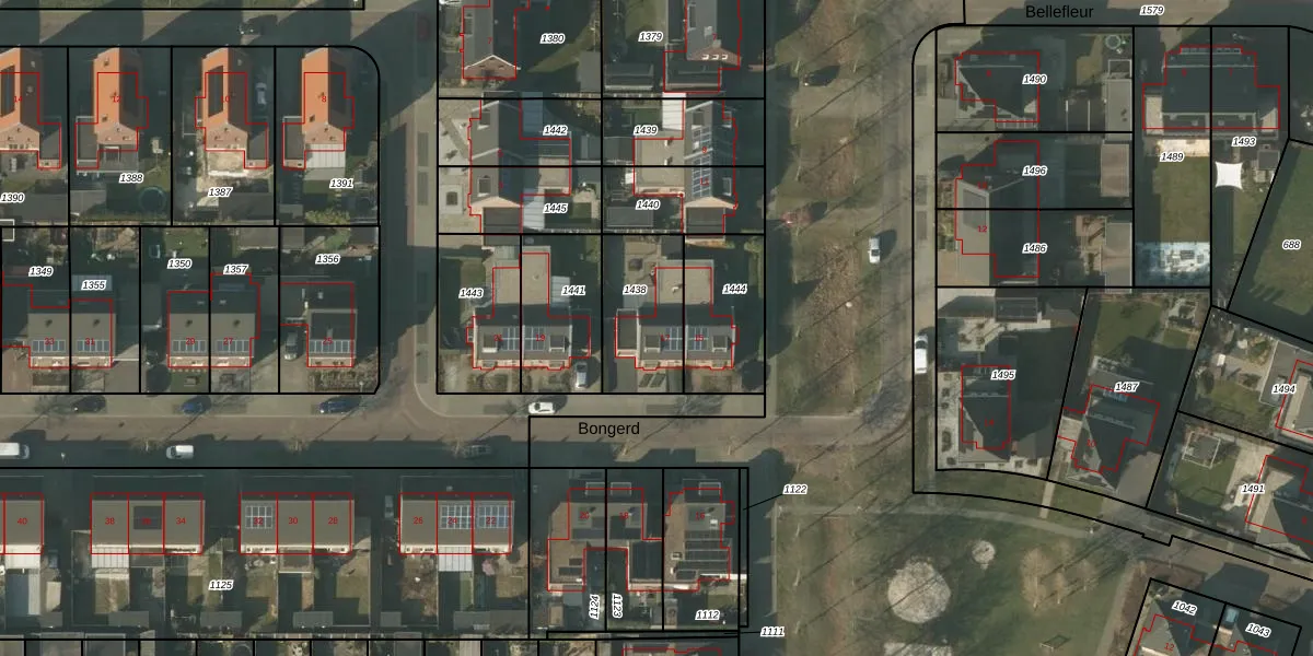 Het perceel waarop Bongerd 17 staat heeft een oppervlakte van 301 m². Dit is een groot perceel. De perceeloppervlakte wordt geregistreerd door het Kadaster. Gedetailleerde informatie over de maten van dit perceel kunt u vinden in het rapport Kadastrale kaart met maatvoering van Bongerd 17.