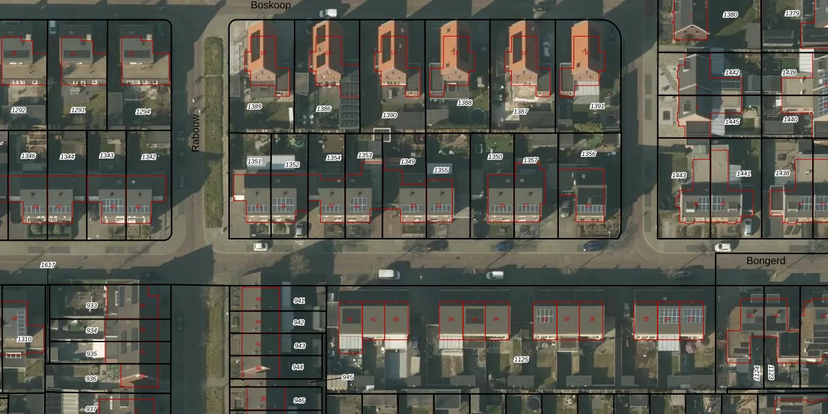 Het perceel waarop Bongerd 33 staat heeft een oppervlakte van 267 m². Dit is een middelgroot perceel. De perceeloppervlakte wordt geregistreerd door het Kadaster. Gedetailleerde informatie over de maten van dit perceel kunt u vinden in het rapport Kadastrale kaart met maatvoering van Bongerd 33.