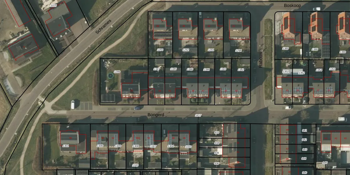 Het perceel waarop Bongerd 51 staat heeft een oppervlakte van 252 m². Dit is een middelgroot perceel. De perceeloppervlakte wordt geregistreerd door het Kadaster. Gedetailleerde informatie over de maten van dit perceel kunt u vinden in het rapport Kadastrale kaart met maatvoering van Bongerd 51.