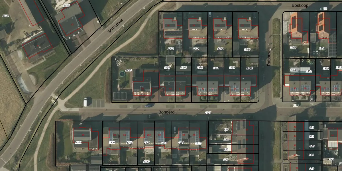 Het perceel waarop Bongerd 53 staat heeft een oppervlakte van 252 m². Dit is een middelgroot perceel. De perceeloppervlakte wordt geregistreerd door het Kadaster. Gedetailleerde informatie over de maten van dit perceel kunt u vinden in het rapport Kadastrale kaart met maatvoering van Bongerd 53.