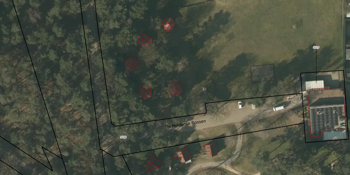 Het perceel waarop De Heldense Bossen 6-B-1 staat heeft een oppervlakte van 27,9 ha. Dit is een zeer groot perceel. De perceeloppervlakte wordt geregistreerd door het Kadaster. Gedetailleerde informatie over de maten van dit perceel kunt u vinden in het rapport Kadastrale kaart met maatvoering van De Heldense Bossen 6-B-1.