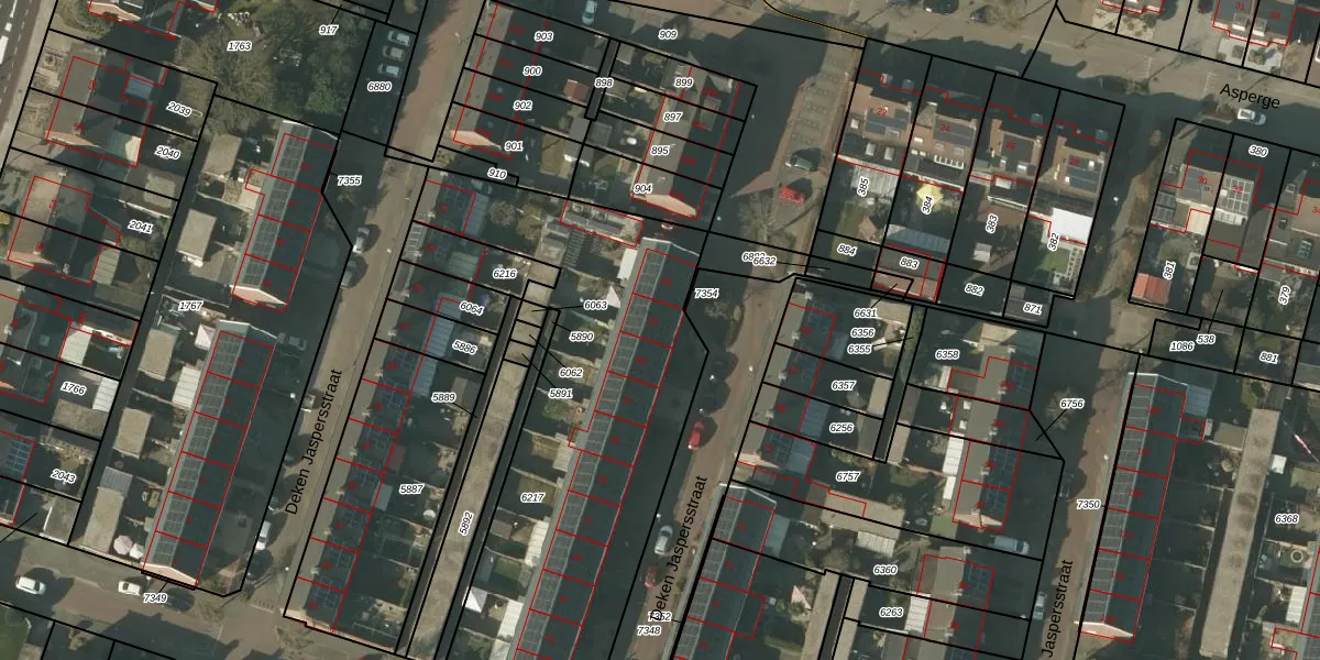 Het perceel waarop Deken Jaspersstraat 61 staat heeft een oppervlakte van 1936 m². Dit is een zeer groot perceel. De perceeloppervlakte wordt geregistreerd door het Kadaster. Gedetailleerde informatie over de maten van dit perceel kunt u vinden in het rapport Kadastrale kaart met maatvoering van Deken Jaspersstraat 61.