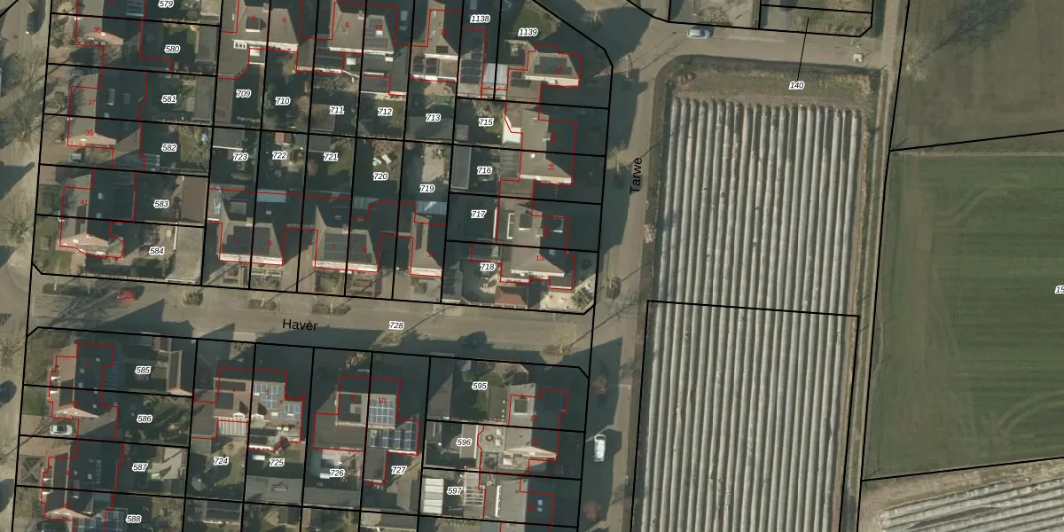 Het perceel waarop Haver 13 staat heeft een oppervlakte van 340 m². Dit is een groot perceel. De perceeloppervlakte wordt geregistreerd door het Kadaster. Gedetailleerde informatie over de maten van dit perceel kunt u vinden in het rapport Kadastrale kaart met maatvoering van Haver 13.