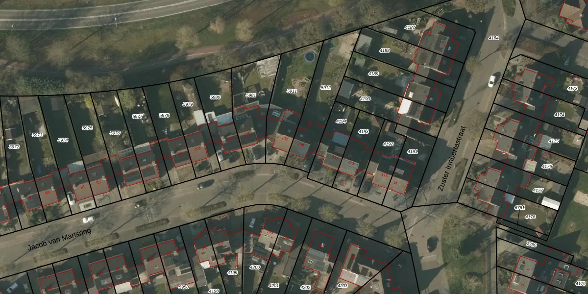 Jacob van Marisring 109 is gelegen op kadastraal perceel HDN01G5912. Deze kadastrale aanduiding is uniek en wordt gebruikt door het Kadaster om eigendomsrechten en andere zakelijke rechten vast te leggen. Het perceel maakt onderdeel uit van de kadastrale gemeente Helden.