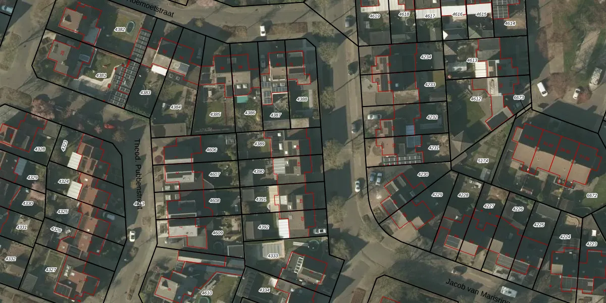Het perceel waarop Jacob van Marisring 45 staat heeft een oppervlakte van 253 m². Dit is een middelgroot perceel. De perceeloppervlakte wordt geregistreerd door het Kadaster. Gedetailleerde informatie over de maten van dit perceel kunt u vinden in het rapport Kadastrale kaart met maatvoering van Jacob van Marisring 45.
