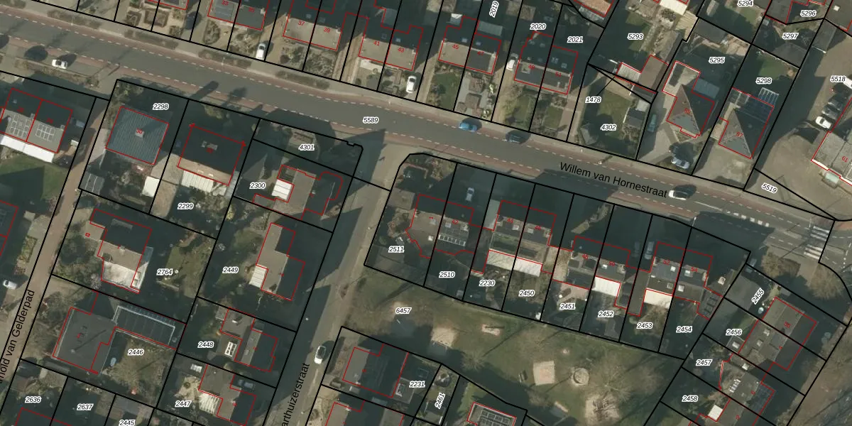 Karthuizerstraat 1 is gelegen op kadastraal perceel HDN01G2511. Deze kadastrale aanduiding is uniek en wordt gebruikt door het Kadaster om eigendomsrechten en andere zakelijke rechten vast te leggen. Het perceel maakt onderdeel uit van de kadastrale gemeente Helden.
