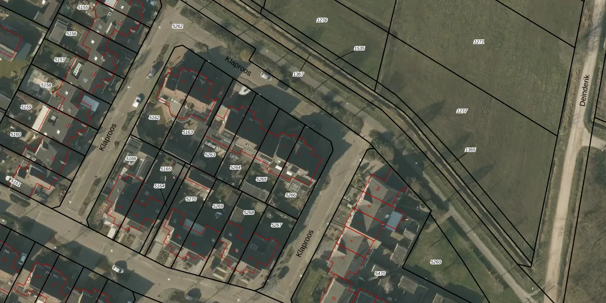 Klaproos 1 is gelegen op kadastraal perceel HDN01D5266. Deze kadastrale aanduiding is uniek en wordt gebruikt door het Kadaster om eigendomsrechten en andere zakelijke rechten vast te leggen. Het perceel maakt onderdeel uit van de kadastrale gemeente Helden.