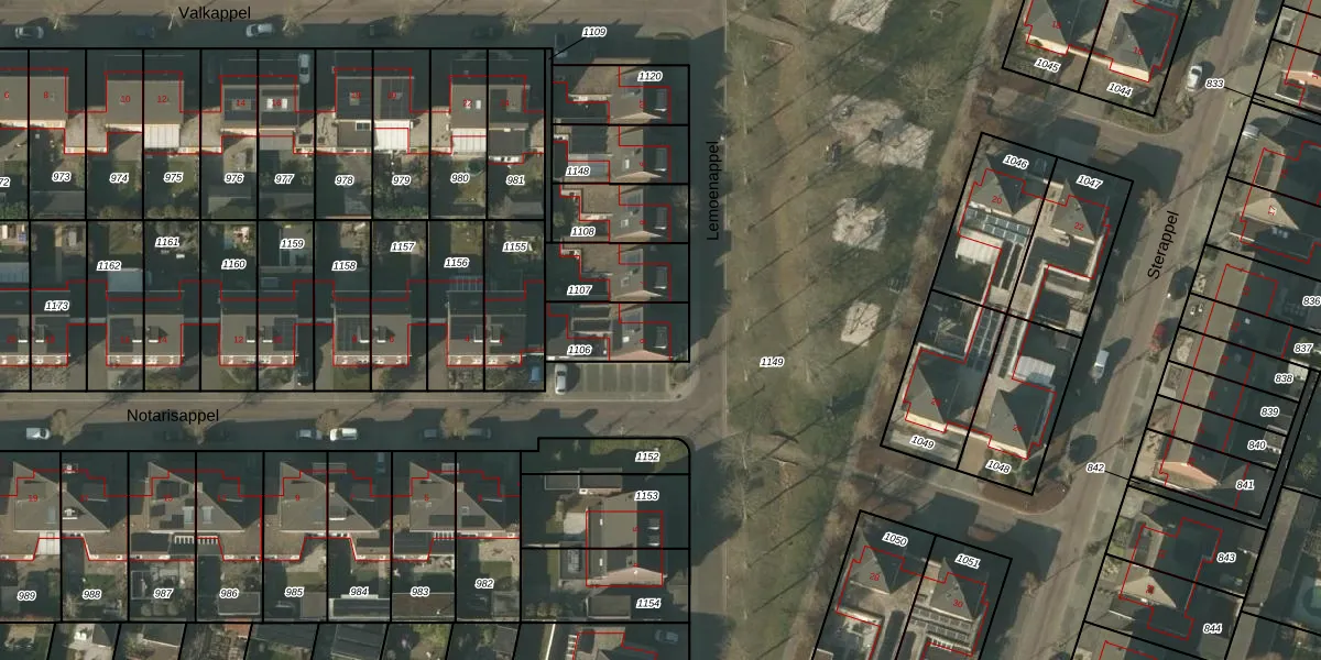 Het perceel waarop Lemoenappel 6 staat heeft een oppervlakte van 196 m². Dit is een middelgroot perceel. De perceeloppervlakte wordt geregistreerd door het Kadaster. Gedetailleerde informatie over de maten van dit perceel kunt u vinden in het rapport Kadastrale kaart met maatvoering van Lemoenappel 6.