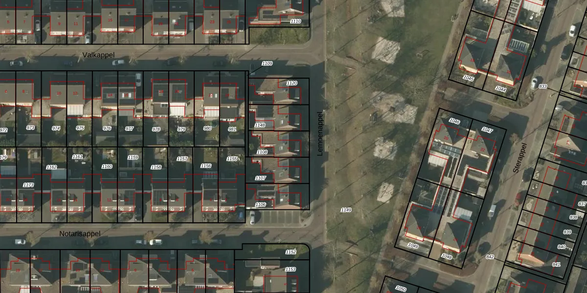 Het perceel waarop Lemoenappel 8 staat heeft een oppervlakte van 187 m². Dit is een middelgroot perceel. De perceeloppervlakte wordt geregistreerd door het Kadaster. Gedetailleerde informatie over de maten van dit perceel kunt u vinden in het rapport Kadastrale kaart met maatvoering van Lemoenappel 8.