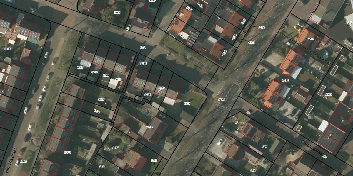 Gebruik de zoekbalk of klik op een perceel voor informatie over de adressen binnen dit perceel.