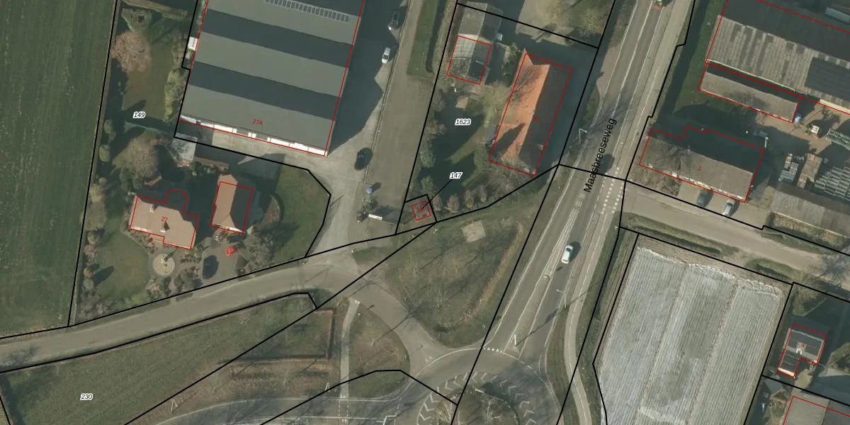 Het perceel waarop het adres ligt is HDN01-V-147. De afkorting 'HDN01' staat voor kadastrale gemeente Helden. Het perceel is kleiner dan gemiddeld in Helden. Het perceel is 54 m² groot, terwijl het gemiddelde ligt op 4697,67 m². Het kleinste perceel in de kadastrale gemeente is 0 m² groot. De grootste perceeloppervlakte is 28,9 ha. Dit is het enige adres dat aanwezig is op het perceel. In de Basisregistratie Kadaster (BRK) werden de grenzen van het perceel geregistreerd op 02-01-2007.