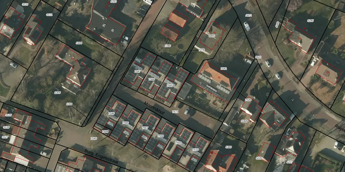 Moennikhof 5 is gelegen op kadastraal perceel HDN01G7565. Deze kadastrale aanduiding is uniek en wordt gebruikt door het Kadaster om eigendomsrechten en andere zakelijke rechten vast te leggen. Het perceel maakt onderdeel uit van de kadastrale gemeente Helden.