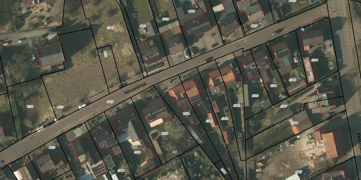 Nieuwstraat 16 is gelegen op kadastraal perceel HDN01G7593. Deze kadastrale aanduiding is uniek en wordt gebruikt door het Kadaster om eigendomsrechten en andere zakelijke rechten vast te leggen. Het perceel maakt onderdeel uit van de kadastrale gemeente Helden.