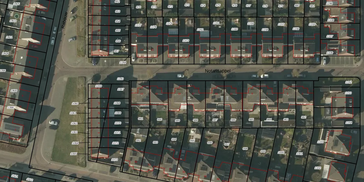 Het perceel waarop Notarisappel 19 staat heeft een oppervlakte van 265 m². Dit is een middelgroot perceel. De perceeloppervlakte wordt geregistreerd door het Kadaster. Gedetailleerde informatie over de maten van dit perceel kunt u vinden in het rapport Kadastrale kaart met maatvoering van Notarisappel 19.