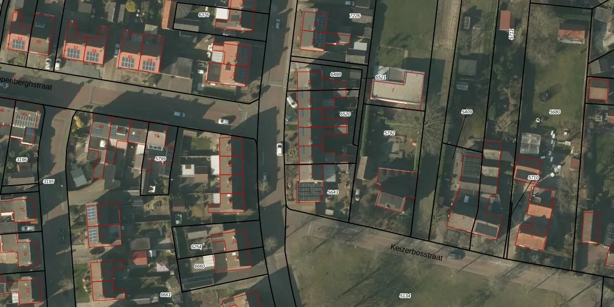 Het perceel waarop het adres ligt is HDN01-G-6520. De afkorting 'HDN01' staat voor kadastrale gemeente Helden. Het perceel is kleiner dan gemiddeld in Helden. Het perceel is 560 m² groot, terwijl het gemiddelde ligt op 4697,67 m². Het grootste perceel in de kadastrale gemeente is 28,9 ha. Het kleinste perceel heeft een oppervlakte van 0 m². Op het perceel zijn 4 adressen aanwezig. In de Basisregistratie Kadaster (BRK) werden de grenzen van het perceel geregistreerd op 16-08-2012.
