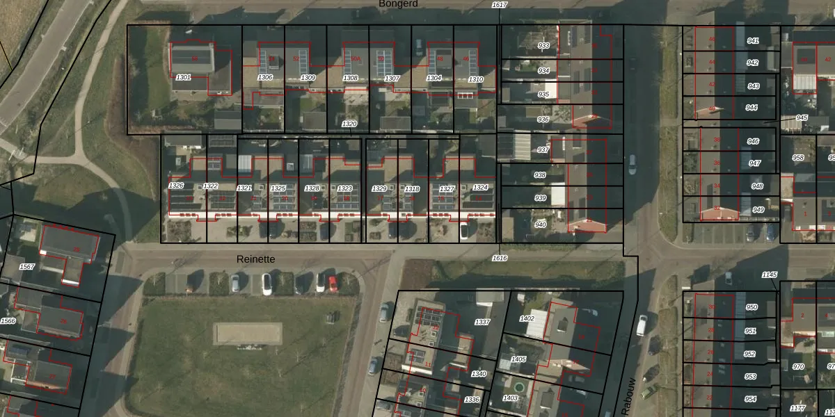 Het perceel waarop Reinette 16 staat heeft een oppervlakte van 184 m². Dit is een middelgroot perceel. De perceeloppervlakte wordt geregistreerd door het Kadaster. Gedetailleerde informatie over de maten van dit perceel kunt u vinden in het rapport Kadastrale kaart met maatvoering van Reinette 16.