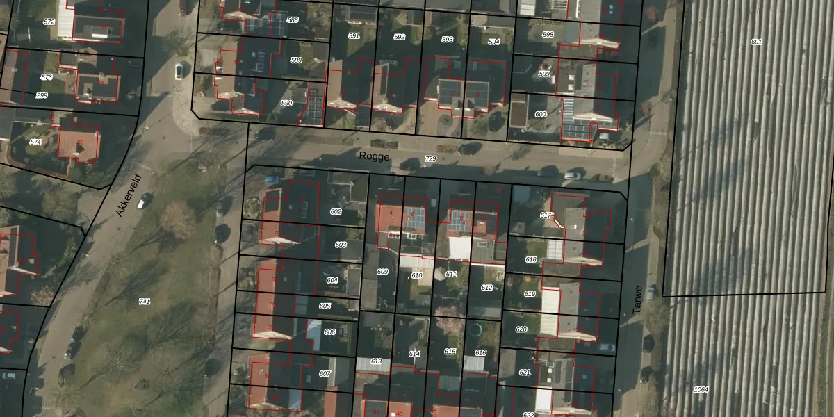 Het perceel waarop Rogge 6 staat heeft een oppervlakte van 282 m². Dit is een middelgroot perceel. De perceeloppervlakte wordt geregistreerd door het Kadaster. Gedetailleerde informatie over de maten van dit perceel kunt u vinden in het rapport Kadastrale kaart met maatvoering van Rogge 6.