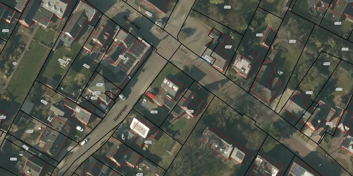 Het perceel waarop Ruijsstraat 60 staat heeft een oppervlakte van 610 m². Dit is een groot perceel. De perceeloppervlakte wordt geregistreerd door het Kadaster. Gedetailleerde informatie over de maten van dit perceel kunt u vinden in het rapport Kadastrale kaart met maatvoering van Ruijsstraat 60.