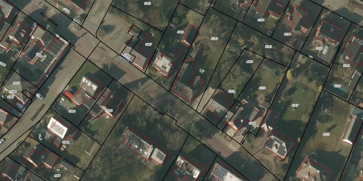 Het perceel waarop Ruijsstraat 75 staat heeft een oppervlakte van 992 m². Dit is een groot perceel. De perceeloppervlakte wordt geregistreerd door het Kadaster. Gedetailleerde informatie over de maten van dit perceel kunt u vinden in het rapport Kadastrale kaart met maatvoering van Ruijsstraat 75.