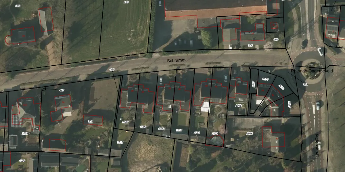 Schrames 34 is gelegen op kadastraal perceel HDN01V1009. Deze kadastrale aanduiding is uniek en wordt gebruikt door het Kadaster om eigendomsrechten en andere zakelijke rechten vast te leggen. Het perceel maakt onderdeel uit van de kadastrale gemeente Helden.