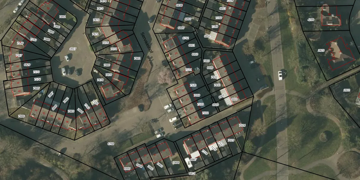 Het perceel waarop Servaashof 19 staat heeft een oppervlakte van 169 m². Dit is een middelgroot perceel. De perceeloppervlakte wordt geregistreerd door het Kadaster. Gedetailleerde informatie over de maten van dit perceel kunt u vinden in het rapport Kadastrale kaart met maatvoering van Servaashof 19.