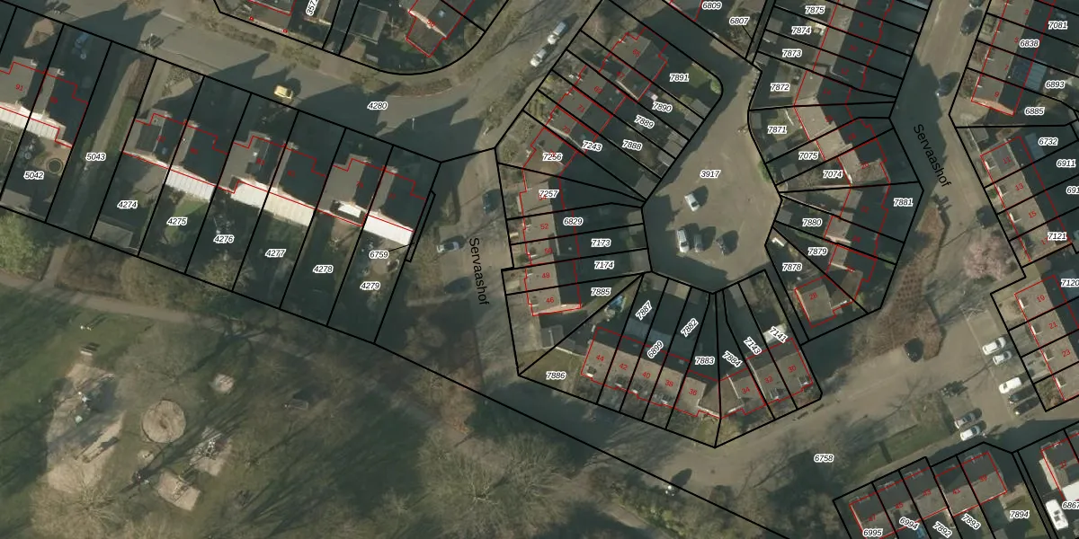Het perceel waarop Servaashof 48 staat heeft een oppervlakte van 123 m². Dit is een middelgroot perceel. De perceeloppervlakte wordt geregistreerd door het Kadaster. Gedetailleerde informatie over de maten van dit perceel kunt u vinden in het rapport Kadastrale kaart met maatvoering van Servaashof 48.