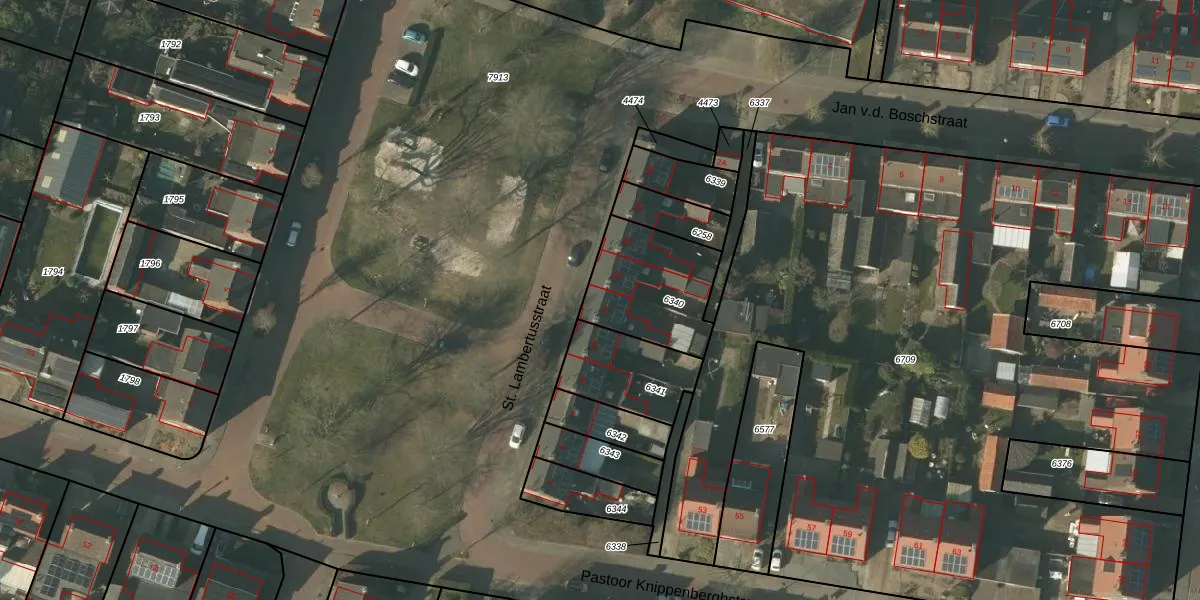 St. Lambertusstraat 12 is gelegen op kadastraal perceel HDN01G6340. Deze kadastrale aanduiding is uniek en wordt gebruikt door het Kadaster om eigendomsrechten en andere zakelijke rechten vast te leggen. Het perceel maakt onderdeel uit van de kadastrale gemeente Helden.