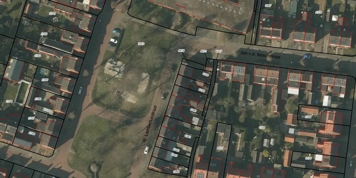 St. Lambertusstraat 16 is gelegen op kadastraal perceel HDN01G6340. Deze kadastrale aanduiding is uniek en wordt gebruikt door het Kadaster om eigendomsrechten en andere zakelijke rechten vast te leggen. Het perceel maakt onderdeel uit van de kadastrale gemeente Helden.