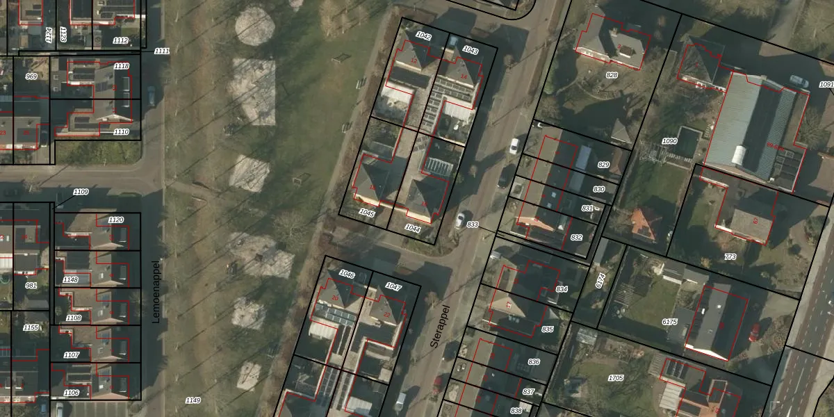 Sterappel 16 is gelegen op kadastraal perceel HDN01V1044. Deze kadastrale aanduiding is uniek en wordt gebruikt door het Kadaster om eigendomsrechten en andere zakelijke rechten vast te leggen. Het perceel maakt onderdeel uit van de kadastrale gemeente Helden.