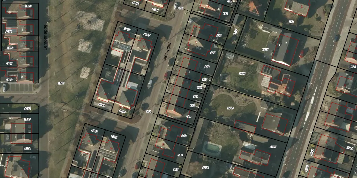 Het perceel waarop Sterappel 25 staat heeft een oppervlakte van 113 m². Dit is een middelgroot perceel. De perceeloppervlakte wordt geregistreerd door het Kadaster. Gedetailleerde informatie over de maten van dit perceel kunt u vinden in het rapport Kadastrale kaart met maatvoering van Sterappel 25.
