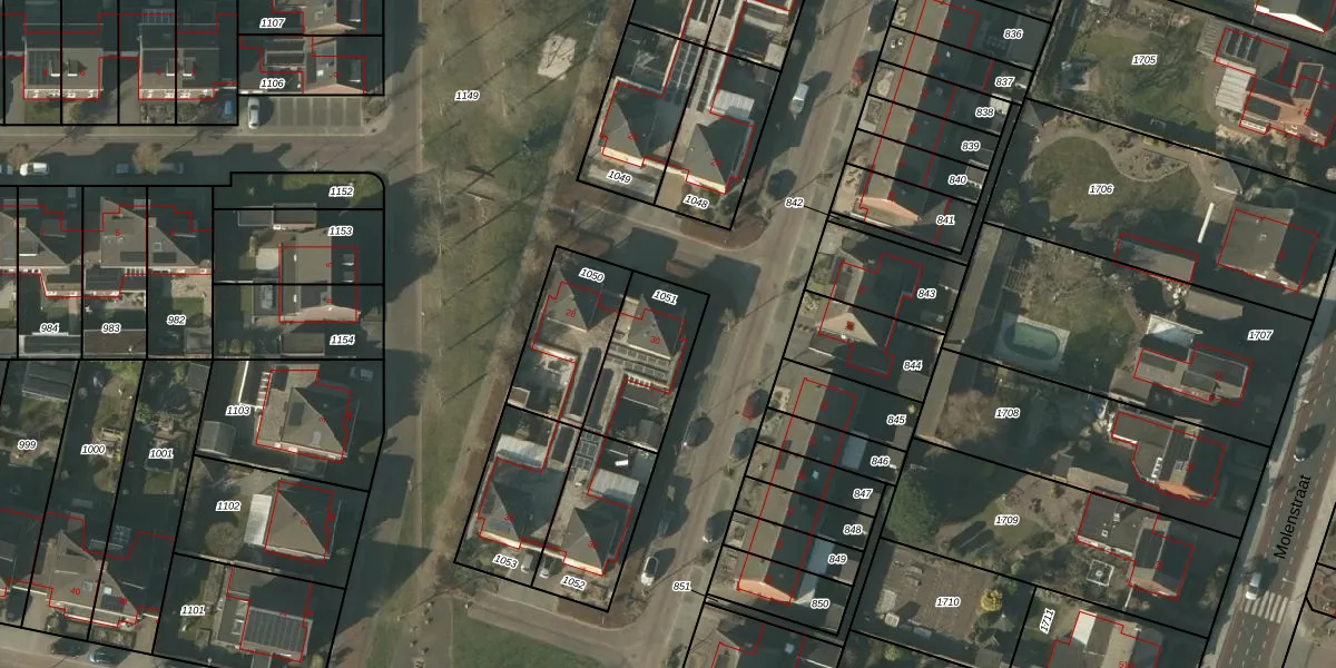 Gebruik de zoekbalk of klik op een perceel voor informatie over de adressen binnen dit perceel.