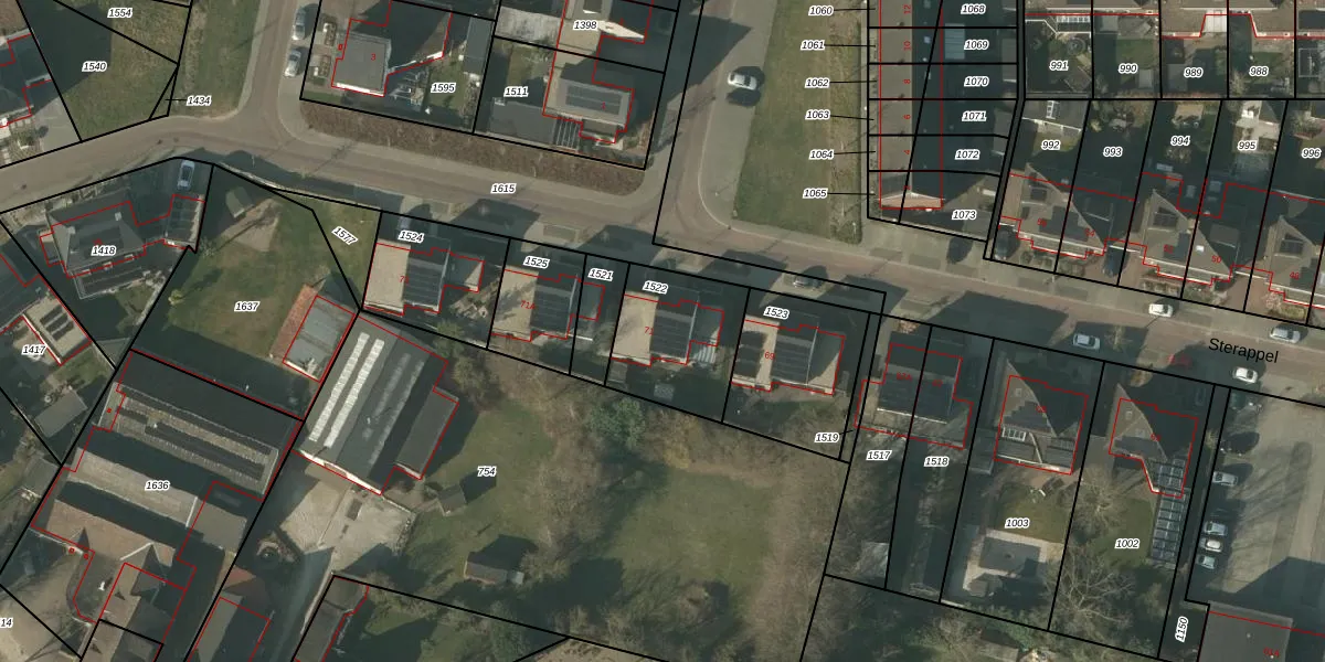 Sterappel 71 is gelegen op kadastraal perceel HDN01V1522. Deze kadastrale aanduiding is uniek en wordt gebruikt door het Kadaster om eigendomsrechten en andere zakelijke rechten vast te leggen. Het perceel maakt onderdeel uit van de kadastrale gemeente Helden.
