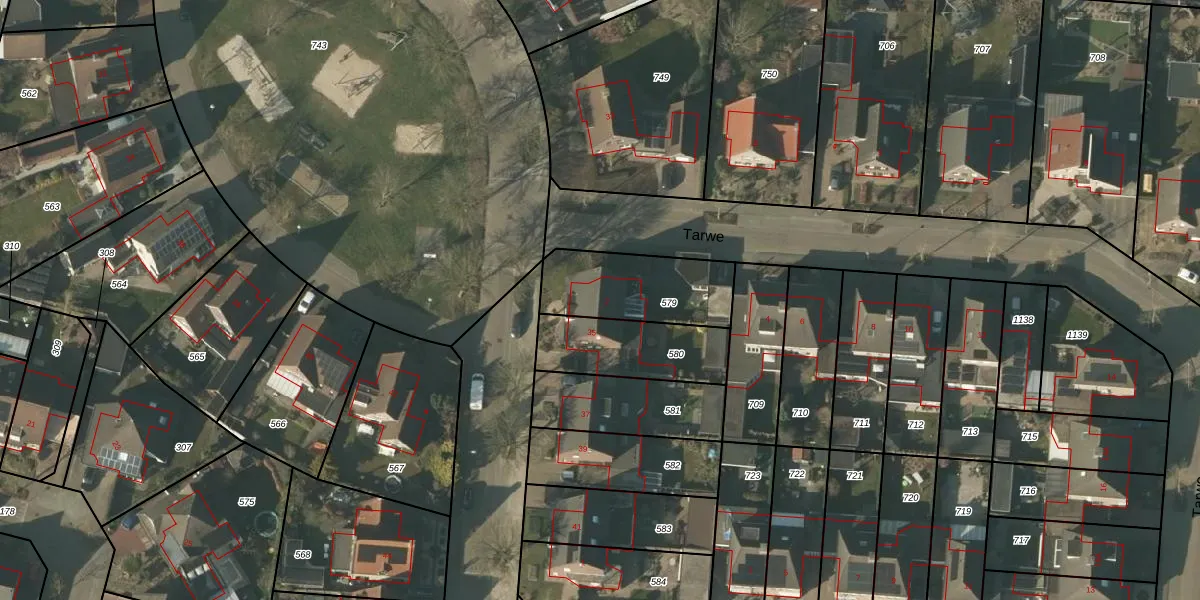 Het perceel waarop Tarwe 2 staat heeft een oppervlakte van 350 m². Dit is een groot perceel. De perceeloppervlakte wordt geregistreerd door het Kadaster. Gedetailleerde informatie over de maten van dit perceel kunt u vinden in het rapport Kadastrale kaart met maatvoering van Tarwe 2.