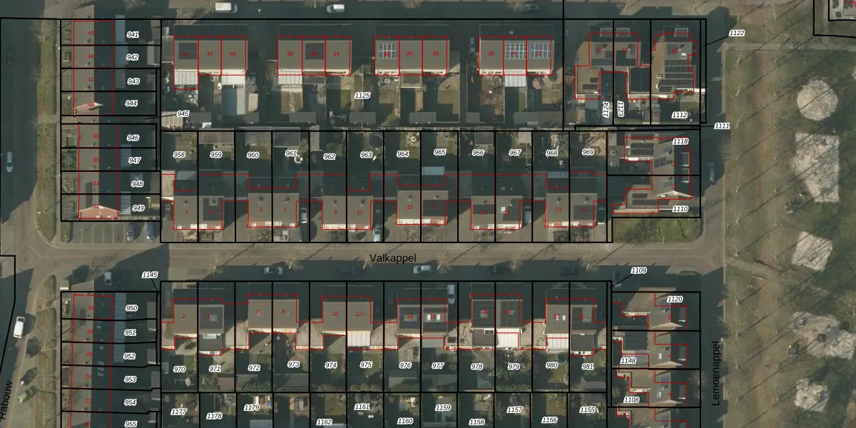 Het perceel waarop Valkappel 17 staat heeft een oppervlakte van 226 m². Dit is een middelgroot perceel. De perceeloppervlakte wordt geregistreerd door het Kadaster. Gedetailleerde informatie over de maten van dit perceel kunt u vinden in het rapport Kadastrale kaart met maatvoering van Valkappel 17.