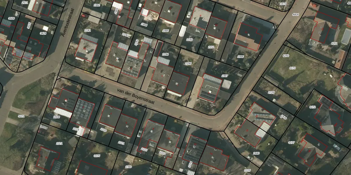 Gebruik de zoekbalk of klik op een perceel voor informatie over de adressen binnen dit perceel.