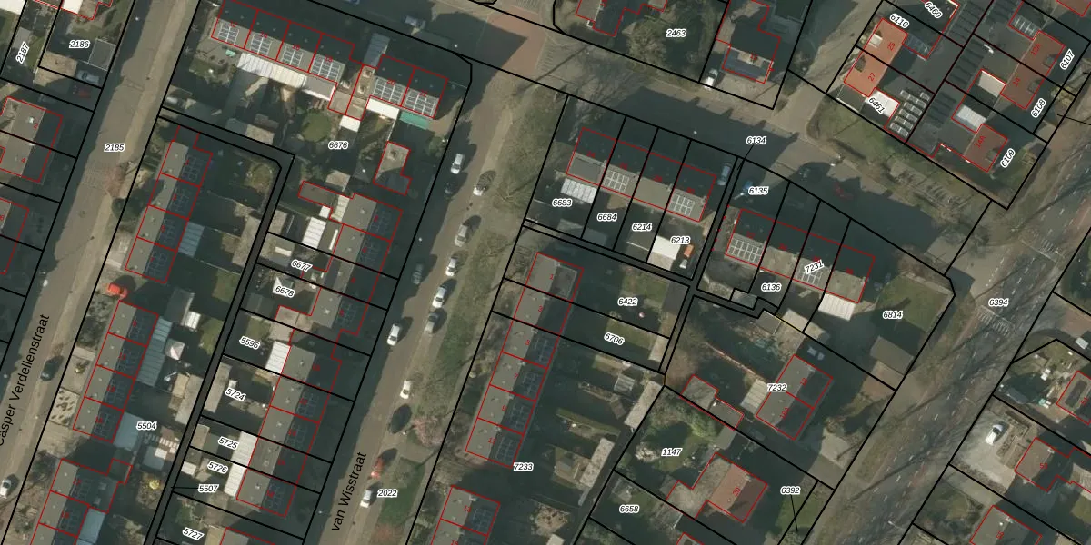 Het perceel waarop van Wisstraat 1 staat heeft een oppervlakte van 335 m². Dit is een groot perceel. De perceeloppervlakte wordt geregistreerd door het Kadaster. Gedetailleerde informatie over de maten van dit perceel kunt u vinden in het rapport Kadastrale kaart met maatvoering van van Wisstraat 1.