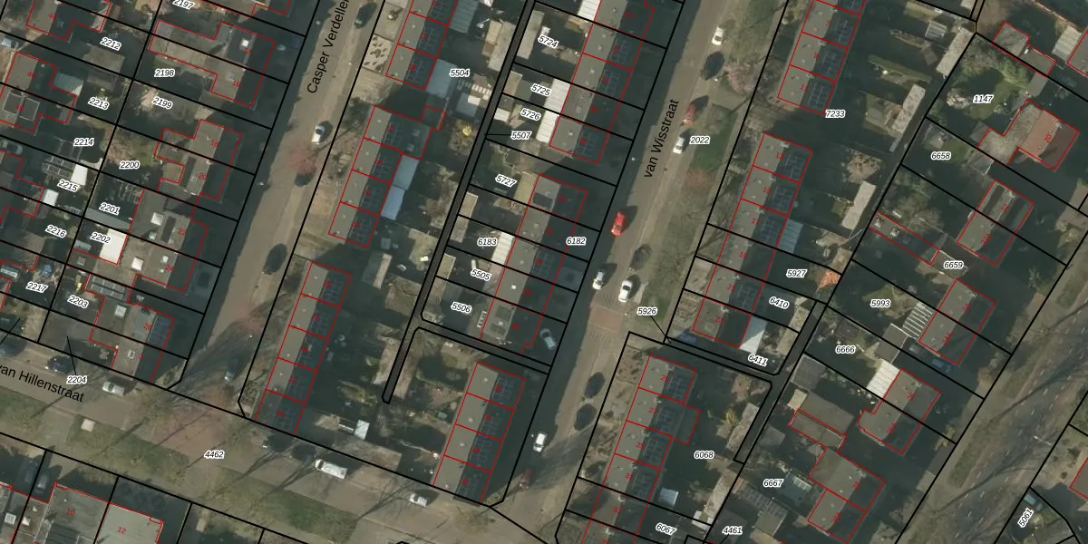 Gebruik de zoekbalk of klik op een perceel voor informatie over de adressen binnen dit perceel.