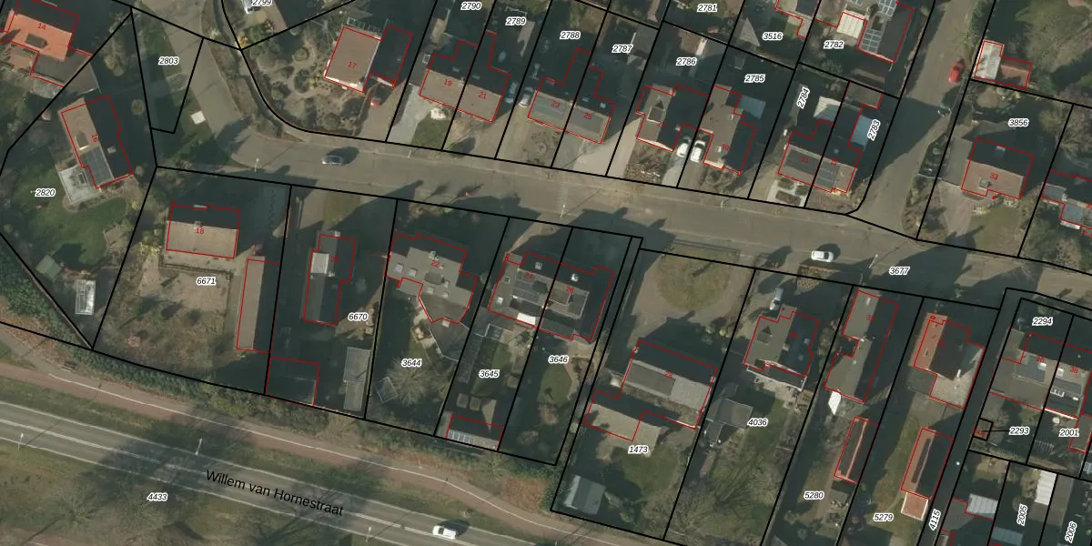 Gebruik de zoekbalk of klik op een perceel voor informatie over de adressen binnen dit perceel.